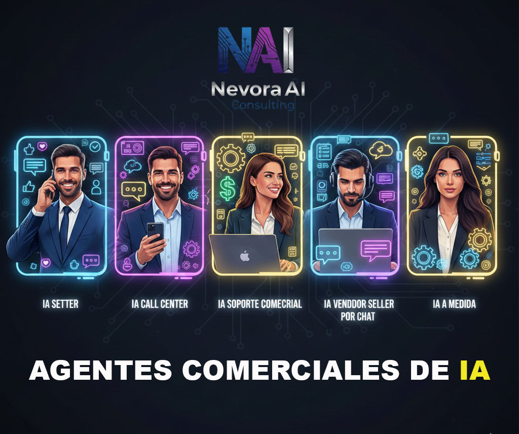 Implementamos Agentes de Inteligencia Artificial que prospectan, atienden llamadas, venden por chat y dan soporte a tus clientes, como un equipo humano… pero más rápido, más barato y siempre disponible.